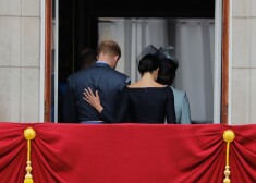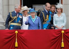 Герцогини Кэтрин, Меган и Камилла, королева Елизавета II и принцы Чарльз, Уильям и Гарри на балконе Букингемского дворца