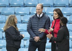 Беременная герцогиня Кэтрин и принц Уильям на футбольном стадионе