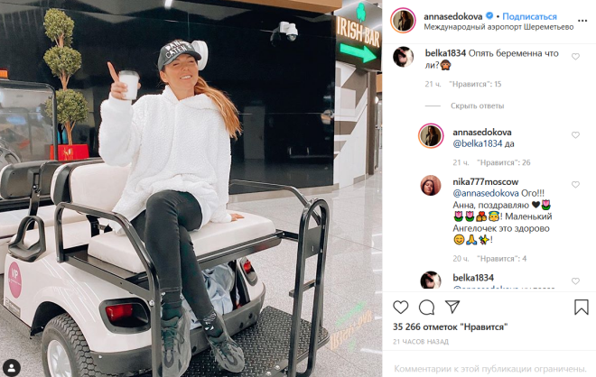 Одна из поклонниц в комманитариях к соседнему посту спросила певицу: "Опять беременна, что ли?". На что неожиданно Седокова ответила: "Да". Никаких дальнейших комментариев от нее на этот счет не последовало. После такой откровенности звезду стали поздравлять с грядущим событием, желая здоровья будущей мамочке и ребеночку. Очень возможно, что Анна просто пошутила, чтобы отбиться от назойливых фанатов. В комментариях некоторые отметили, что ответ певицы может быть саркастическим и попросили не устраивать ажиотаж.
