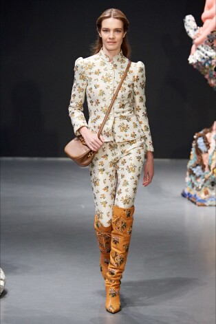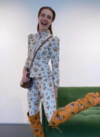 Позже Наталья начала примерку. Блондинка переоделась в цветочный брючный костюм и ботфорты с похожим принтом. «Первый look — игра с классикой и ностальгией. Автор вдохновлялась турецким, английским и французским фарфором, а также смешивала исторические отсылки с современными идеями», — рассказала звезда в Instagram stories.