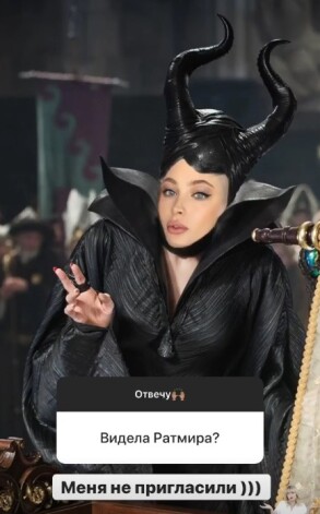 Поклонники поинтересовались у Алены, видела ли она Ратмира. Блондинка ответила с юмором. Она вставила свое лицо в изображение колдуньи Малефисенты и написала: «Меня не пригласили».