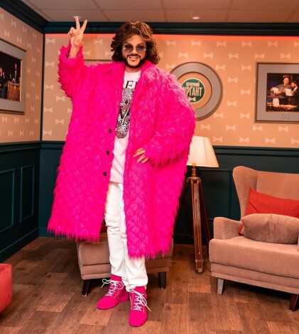 Киркоров предпочитает одеваться ярко и эпатажно. Для шоу Ивана Урганта артист тоже выбрал эффектный образ. Филипп надел ярко-розовую шубу, белые брюки и розовые кроссовки. Король российской эстрады похвастался поклонникам, что весь его look состоит из вещей Balenciaga.