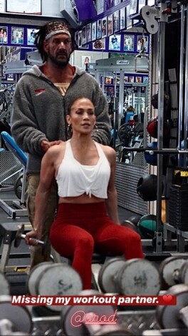 Звезда посетовала о том, что пришла на тренировку одна, обычно компанию ей составляет возлюбленный, Алекс Родригес. Спортсмен улетел из города на сборы. «Скучаю по моему партнеру по тренировкам», — подписала фото из зала Лопез.