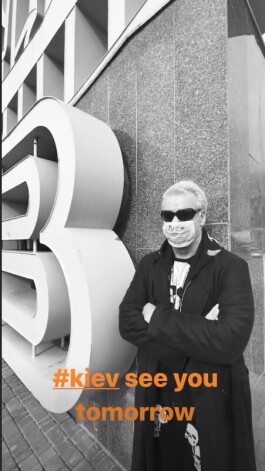 Вначале стало известно о прибытии в Киев фронтмена группы Rammstein. Сегодня вечером у эпатажного немецкого музыканта здесь состоится концерт. Певец предохраняется, он перемещается по городу в защитной маске с надписью «К черту коронавирус».