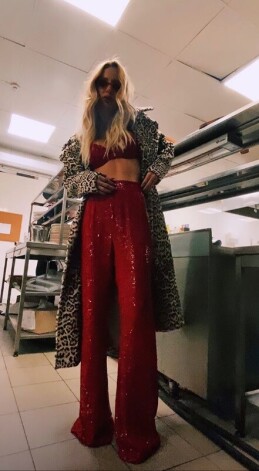 А Лобода уже дала концерт в родном городе. Исполнительница хитов «Твои глаза» и «Новый Рим» выступила перед публикой в ярком образе. Она надела красный топ и брюки-клеш, украшенные пайетками, а сверху накинула леопардовый плащ.