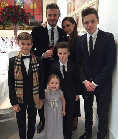 Дэвид и Виктория Бэкхем с детьми в аэропорту
