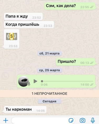 Рэпер Гуф обнародовал, в каком виде проходит его общение с сыном. Исполнитель поделился частью переписки, в которой 9-летний Сэм сначала просит у него денег, а потом обвиняет в зависимости. «Ты наркоман», — написал ребенок своему отцу.