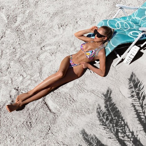 Уже в понедельник, 4 мая, Мария поделилась снимком и видео, где появилась в бикини, который обнажает абсолютно плоский живот. Позирует Погребняк на пляже на фоне комфортабельного лежака.