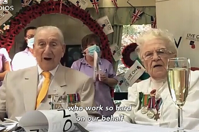 В доме престарелых графства Ист-Сассекс шампанское лилось рекой, а ветераны сидели за столами и вспоминали, как закончилась борьба с фашизмом в Европе. Герцог и герцогиня Кембриджские присоединились к празднованию по видеосвязи.