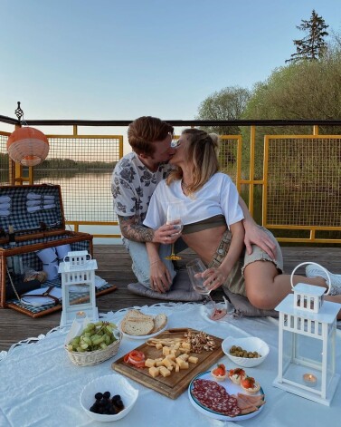 Алена Краснова и Никита Пресняков три года счастливы в официальных отношениях. Пара не боится афишировать личную жизнь. Так, накануне возлюбленная внука Аллы Пугачевой в своем микроблоге в Instagram опубликовала серию снимков, сделанных на пикнике. В кадре запечатлены закуски и напитки. Никита и Алена слились в страстном поцелуе.