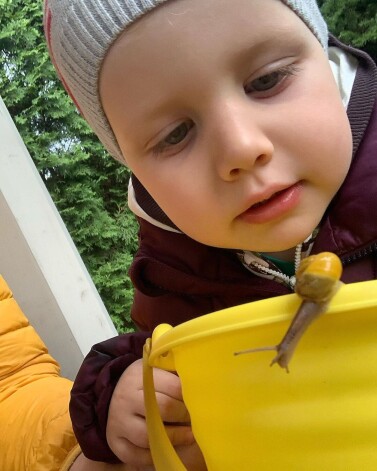 Мальчик с интересом рассматривал улитку, которую заметил на ведре. «Природа зовет», - пошутил актер.