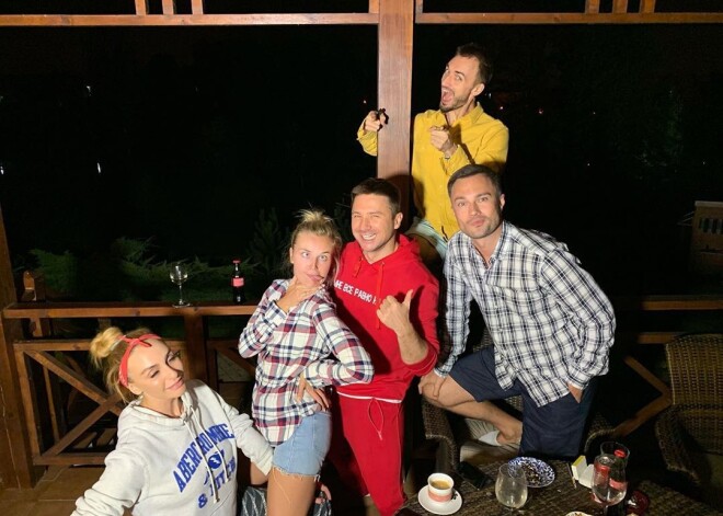 Певица опубликовала видео, на котором она стоит рядом с Дмитрием и повторяет ритмичные движения. На ней — белое мини-платье в рубашечном стиле и золотистые казаки. Наряд подчеркнул тонкую талию и длинные ноги звезды. На Дмитрии — джинсы и толстовка с черной надписью «Пухляш».