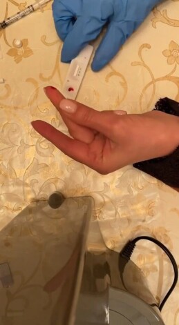 Лера продезинфицировала палец, выдавив немного крови, нанесла ее на тест, а затем добавила буфер, чтобы запустить реакцию. Спустя 15 минут Кудрявцева озвучила результат: «Коронавируса нет, антител нет».