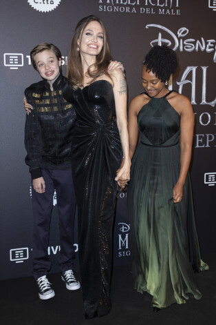 Анджелина Джоли с детьми на премьере фильма "Малефисента: Владычица тьмы"