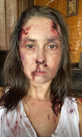 Лицо актрисы — сплошная маска: синяки, царапины, кровоподтеки... На фоне недавних скандальных историй с мужем Павлом Прилучным, который, как говорила Агата, поднимал на нее руку, снимок выглядит ужасающе достоверным.