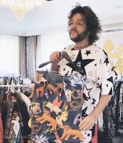 Филипп показал самую дорогую вещь в своей коллекции – это балахон от Dolce & Gabbana, украшенный библейскими сюжетами. Вещь он берег для особого случая и снялся в ней в своем клипе на песню «Романы», в котором появилась Екатерина Варнава. Он отметил, что причудливый наряд стоил 280 тысяч евро.