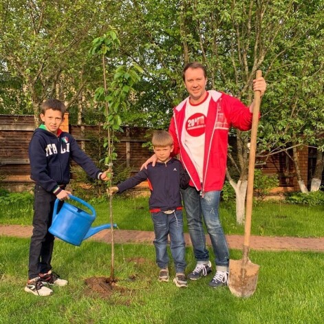 53-летний актер в Instagram разместил снимок с двумя мальчиками. «В честь 20-летия фестиваля «Черешневый лес» посадили сегодня в нашем саду молодое деревце. Ждем, когда зацветет!» — отметил актер.