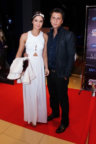 Агата Муцениеце и Павел Прилучный с сыном Тимофеем в Риге