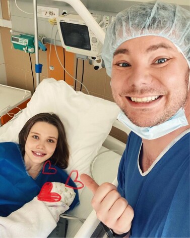 DJ Smash показал первое фото с девочкой. Счастливый отец сделал селфи с возлюбленной и дочерью в больничной палате. Анастасия без макияжа и с распущенными волосами предстала на кровати. Она нежно прижала к себе новорожденную. Молодая мама закрыла личико малышки на снимке нарисованным сердечком.