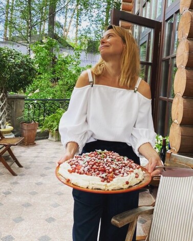 Юлия Высоцкая обнародовала в личном блоге кадры из милых домашних посиделок в загородном доме. Специально для семейного праздника актриса испекла итальянскую пиццу, а также постаралась принарядиться.