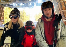 Яна Рудковская и Евгений Плющенко с сыном в Куршевеле в феврале 2019 года