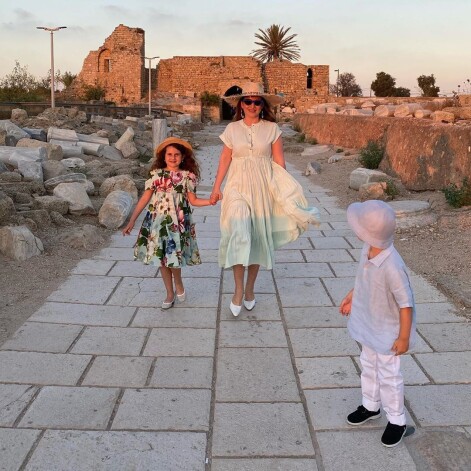 Жасмин призналась, что гостит у своей бабушки Сони, которая очень рада была увидеть правнуков. В свободное время артистка посещает экскурсии и показывает детям главные достопримечательности страны. «Сегодня побывали в Национальном парке «Кейсария» — это старый центр древнего города Кейсария, названного так Иродом I в честь кесаря Августа. Город стал административным центром Римской прокуратуры в Иудее, а также был основной базой римских легионов. К сожалению, большая часть его ушла под воду много веков тому назад, но что осталось — завораживает».