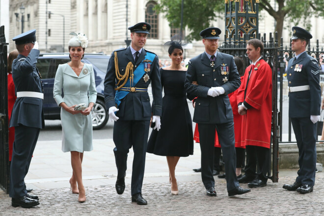 Герцогини Кэтрин, Меган и Камилла и принцы Чарльз, Уильям и Гарри на службе в Вестминстерском аббатстве