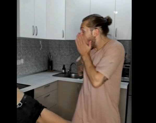 С Ангелиной певец хотел записать зажигательный танец на кухне, однако в процессе все пошло не по плану. Финалистка кастинга в группу SEREBRO начала активно двигать локтями, а экс-участник группы «БиС» крутил головой и подпевал. Влад сделал резкое движение правым локтем и попал возлюбленной в лицо.