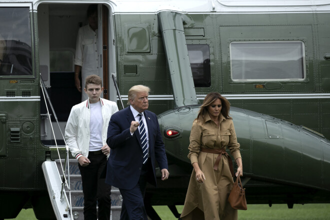 Дональд и Мелания Трамп с сыном Бэрроном возвращаются в Белый дом 16 августа 2020 года