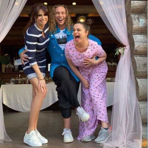 Также они закатили домашнюю вечеринку, на которую позвали гостей: Владимира Винокура, Иду Достман и других известных персон. По такому случаю певица облачилась в розовое платье макси с цветочным принтом. Она дополняла наряд туникой с толстой вязкой. Волосы звезда собрала в два высоких пучка.