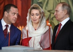 Путин и Медведев приняли участие в пасхальном богослужении в храме Христа Спасителя