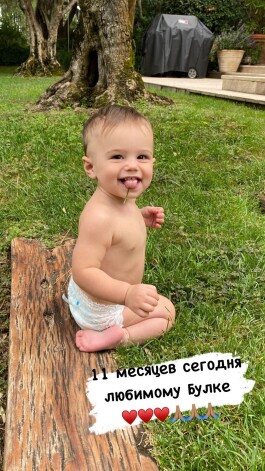 Трогательные видео Анастасия опубликовала в Stories на своей странице в Instagram. Модель показала архивные фото Ратмира и написала: «11 месяцев сегодня любимому Булке». За время отпуска и карантина мальчик успел заметно подрасти и стать точной копией своих звездных родителей.