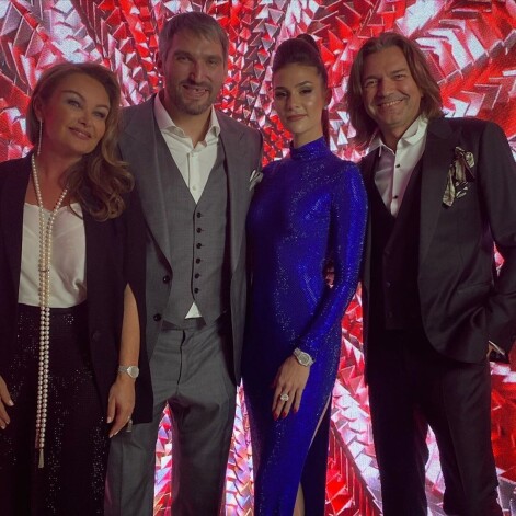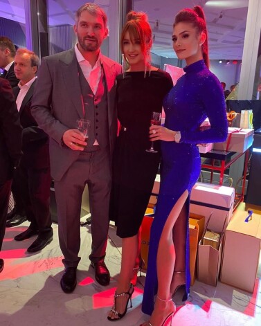 Рядом с Александром Овечкиным весь вечер была его жена Настасия – у пары очень трогательные отношения, они часто держаться за руки, целуются. Настасия выглядела великолепно – она выбрала для праздника сверкающее платье, декорированное кристаллами Swarovski от бренда Angel Ann. Дочь Веры Глаголевой сказала речь, в которой были такие слова: «Ты действительно достоин быть счастливым». И это правда – именинник светился от счастья за столом с родителями и родней жены. Овечкин недавно прилетел в Россию из Америки, где выступает за клуб «Вашингтон Кэпиталз». Его жена с двумя детьми и собакой прилетела ранее на частном рейсе.