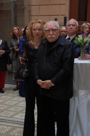 Армен Джигарханян и Виталина Цымбалюк-Романовская на открытии выставки в Риге в 2012 году