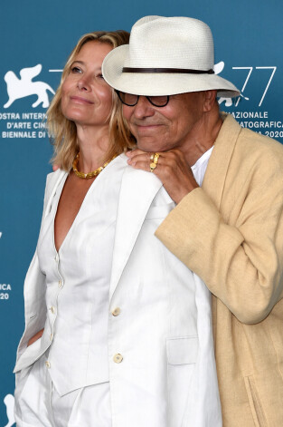 Андрей Кончаловский и Юлия Высоцкая на фотоколле фильма "Дорогие товарищи" в Венеции