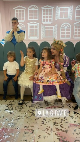 Центром праздничного стола стал двухъярусный торт, украшенный фигуркой Рапунцель, расчесывающей золотые локоны. Климова позволила себе расслабиться и веселилась вместе с детьми. Она подпевала и подтанцовывала ребятам, участвовала в конкурсах и резвилась в бассейне с шарами.