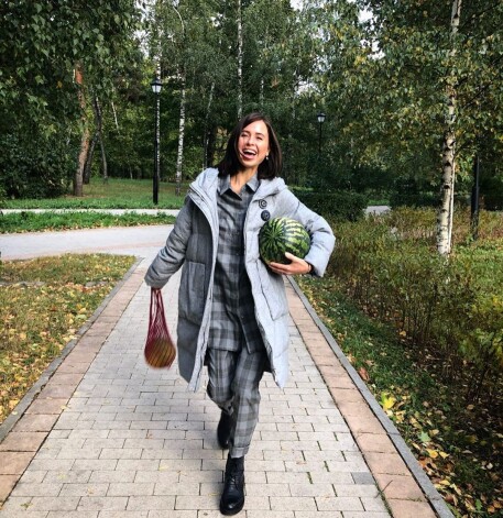 34-летняя Мирослава Карпович воспользовалась теплой погодой и приняла участие в необычном проекте. Съемки происходили на свежем воздухе в московском парке Зарядье.