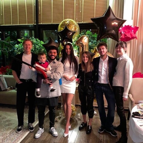Модель провела день в компании своей подруги Натальи Рудовой, которая привезла малышу подарки. А на следующий день рэпер и его экс-возлюбленная уже устроили домашний праздник для родных и друзей. Именинника они нарядили в брюки, рубашку и красный кардиган. Бабочка дополняла его праздничный образ.