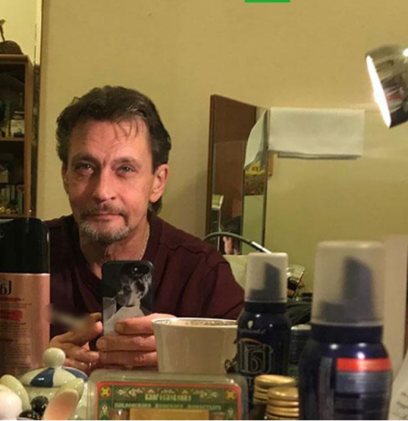 Домогаров сделал селфи в гримерке во время подготовки к очередному выходу на сцену со спектаклем «Ричард III», где он играет главную роль. «За три часа до начала спектакля и до времени "Х" 40 минут», — подписал он кадр.