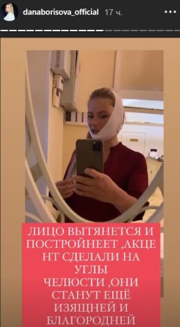 «Буду красивая! Лицо вытянется и постройнеет, акцент сделали на углы челюсти, они станут еще изящней и благороднее», — пишет Дана.