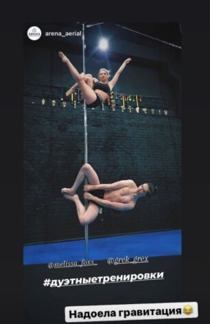 Глушко-младший выложил кадр из «Арены воздушно-силовой атлетики», куда пришел в компании своей девушки. Парень запечатлен во время парной тренировки с некоей Мелиссой Фокс. Они показывали сложные элементы на пилоне. «Надоела гравитация», — пошутил Архип.