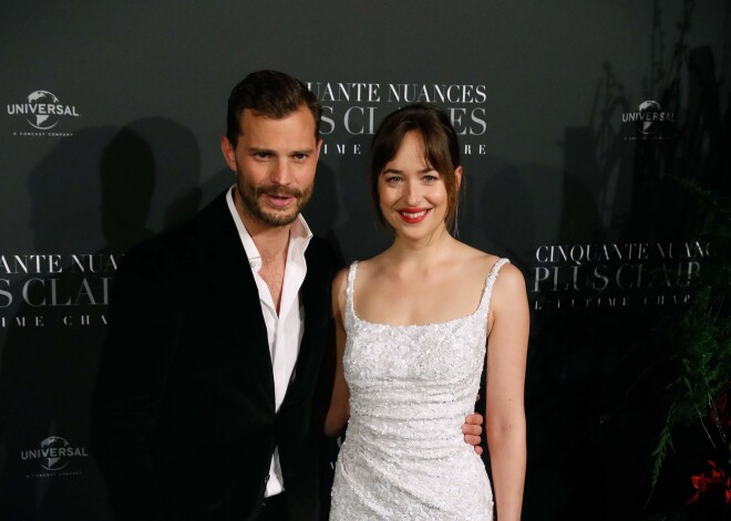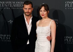 Джейми Дорнан, Дакота Джонсон, Рита Ора на премьере фильма «50 оттенков свободы» в Париже