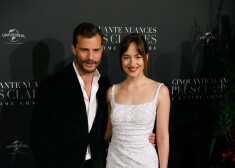 Джейми Дорнан и Дакота Джонсон на премьере фильма "На 50 оттенков темнее" в Лондоне