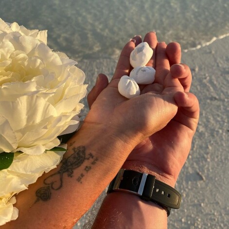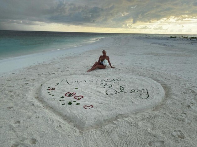 Она также опубликовала фото, на котором держит за руку возлюбленного. Они держали белые камушки. Позже Волочкова попозировала на песке, где было изображено сердце с ее именем и именем ее избранника Олега. «Романтика на необитаемом острове. Незабываемый вечер», — похвасталась балерина.
