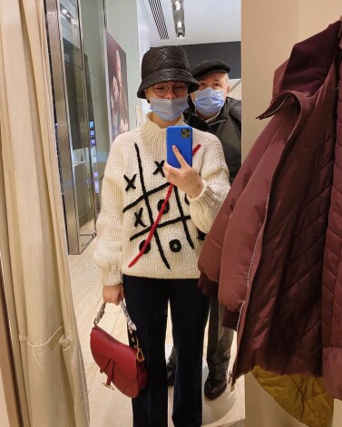 Молодая мама предпочла черные расклешенные брюки. Она надела шляпку в тон. Ярким акцентом стала красная кожаная сумочка с золотистой цепочкой. Евгений Ваганович предпочел классический брючный костюм и кепку. Супруги позировали в прихожей. Они соблюли меры предосторожности и закрыли лица медицинскими масками. «Семейное селфи», — заметила Татьяна.