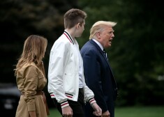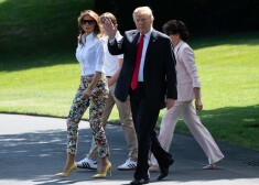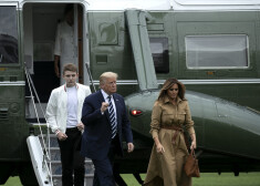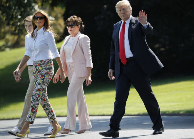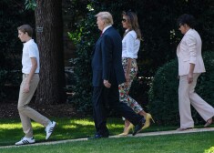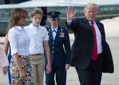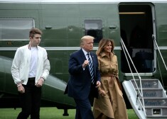 Мелания, Дональд и Бэррон Трамп с матерью Мелании Амалией Кнавс по дороге во Флориду