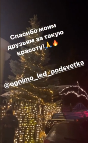 Особняк буквально утонул в огоньках, создавая атмосферу сказки и приближающегося новогоднего торжества. Балерина осталась довольна.