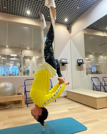 У себя в Instagram Екатерина поделилась фотографией из фитнес-клуба. Занятиям с железками знаменитость предпочла воздушную йогу, именно поэтому в кадре нестареющая Андреева висит вверх ногами на подвесах. «Иногда, чтоб поставить все с головы на ноги, надо перевернуть все с ног на голову. Если мне предстоит принять важное решение — я вот так зависаю и… voila», — призналась в комментарии ведущая.