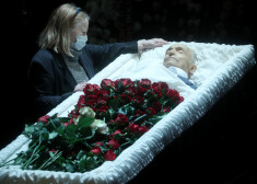 Гроб с телом актера Валентина Гафта установили на сцене театра «Современник» в окружении венков.