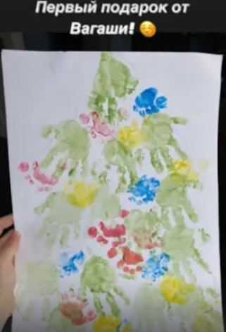 В сторис Instagram супруга Евгения Петросяна с гордостью показала первый подарок от своего сына. Мальчик измазал ладони в ярких красках и нарисовал на листе бумаги подобие новогодней ели. А для того, чтобы у фолловеров не осталось вопросов к этой картине, Брухунова написала ее название внизу листа, также указав дату — 31 декабря 2020-го.